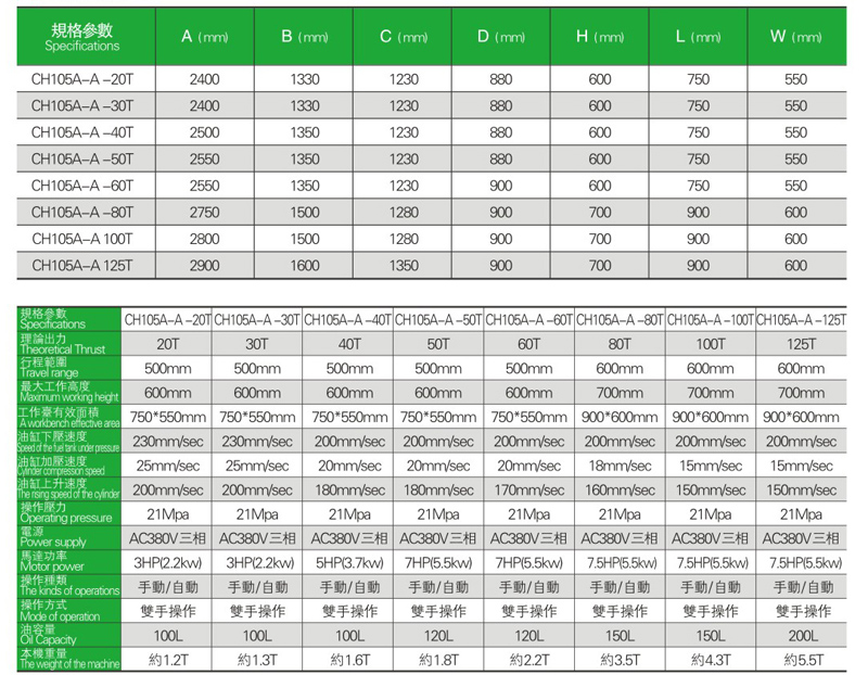 本機采用四柱三板式開放空間,采用先進的子母缸液壓回路,油溫低。導柱采用高頻真空淬火處理可達到抗拉,耐磨之效果。
